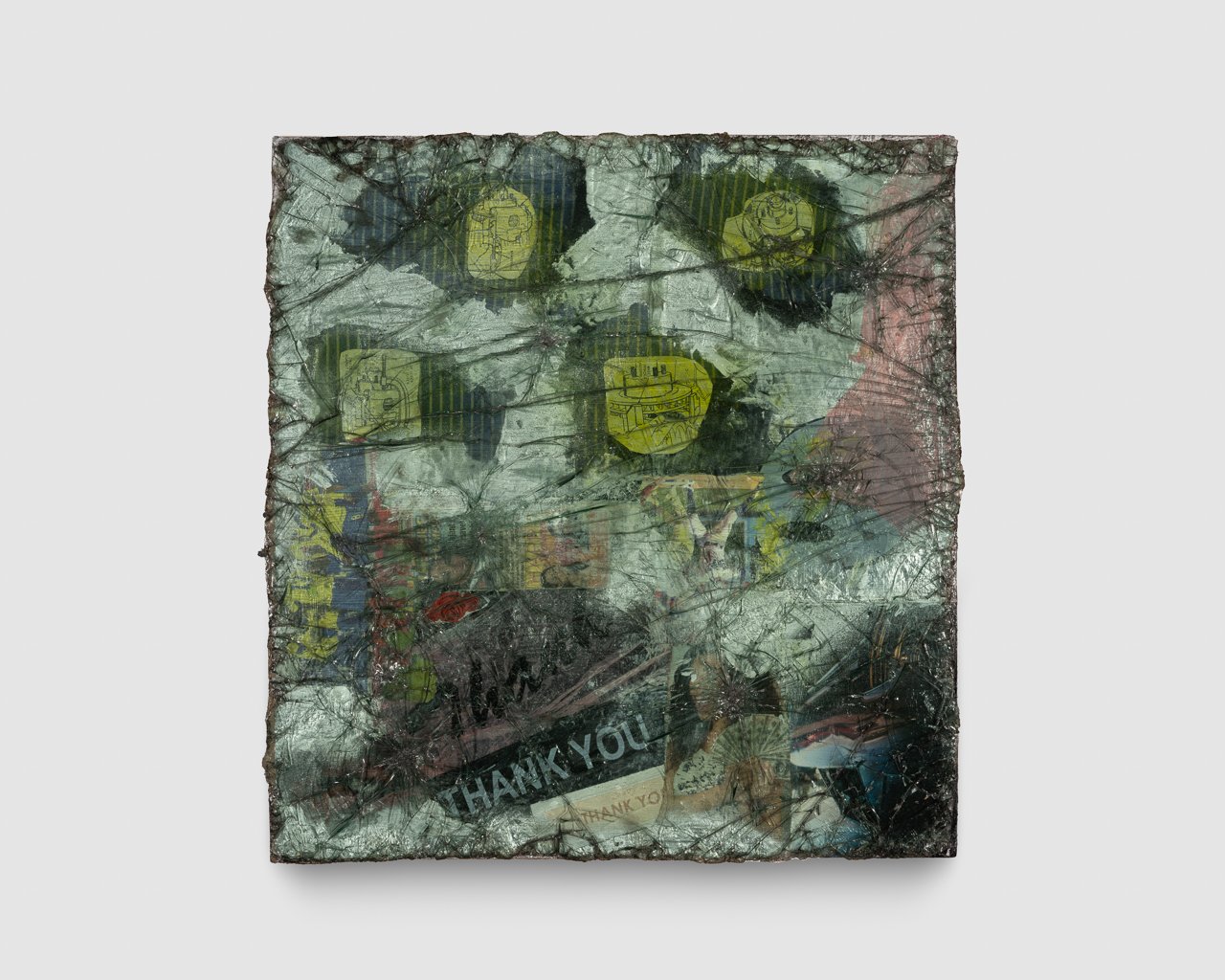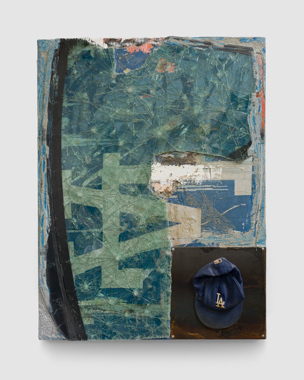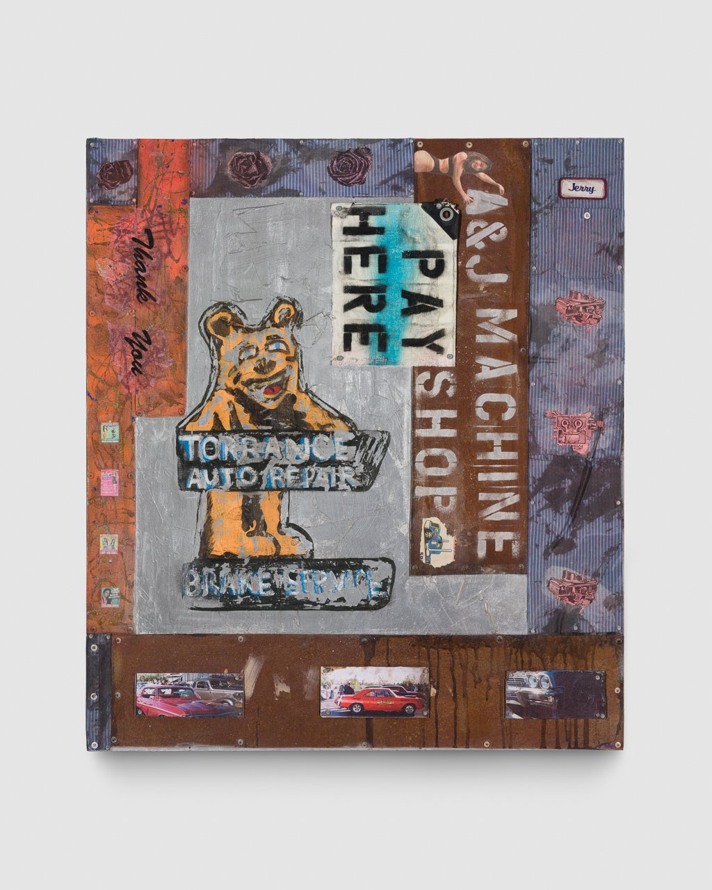 Charlie James Gallery is proud to present Jerry Peña: A Rose By Any Other Name, an exhibition of wall-based works that merge painting, photography, and found materials in compositions that spring from the artist’s keen observations of the psychological and physical landscapes that surround him. The works aesthetically descend from Rauschenberg’s Neo-Dada inventions, combining the materials of art and life to create something more than either alone. Peña employs the textures, colors, and materials of working class Los Angeles in experimental, expressionist compositions that speak to his own family history, the history of the city, and the tensions of identity and assimilation. His work pieces together hallmarks of Americana – the cars, beers, and teams that garner followings so loyal that they become signifiers of self – which Peña then complicates through local specificity and material invention. A deep sense of place suffuses the work, which evokes a particular Los Angeles built on hard labor and fierce pride. This is the artist’s first exhibition with the gallery.