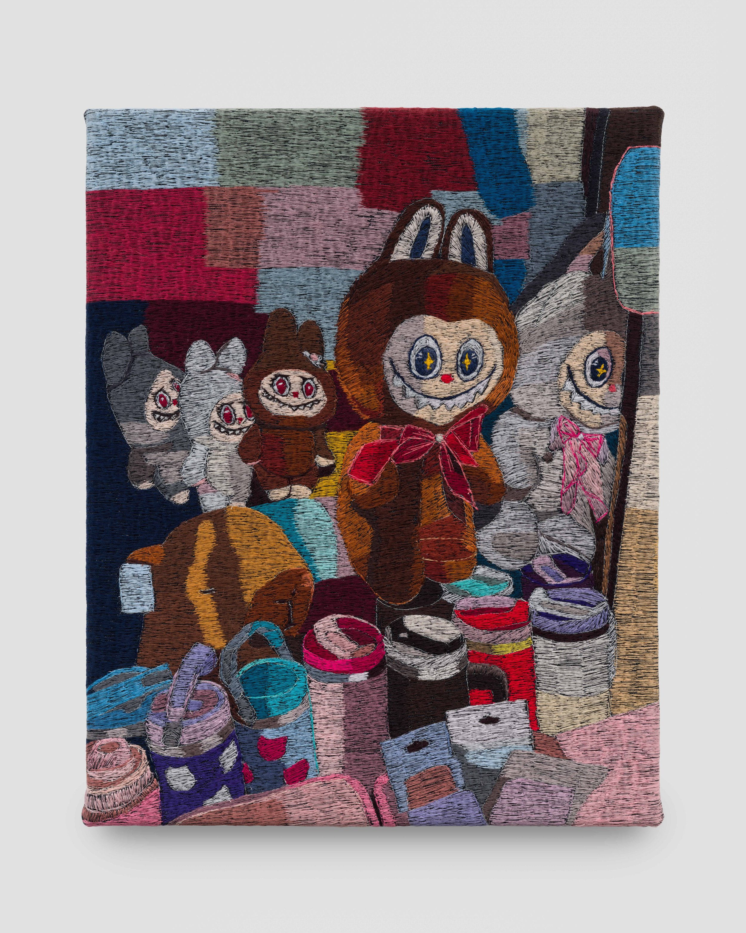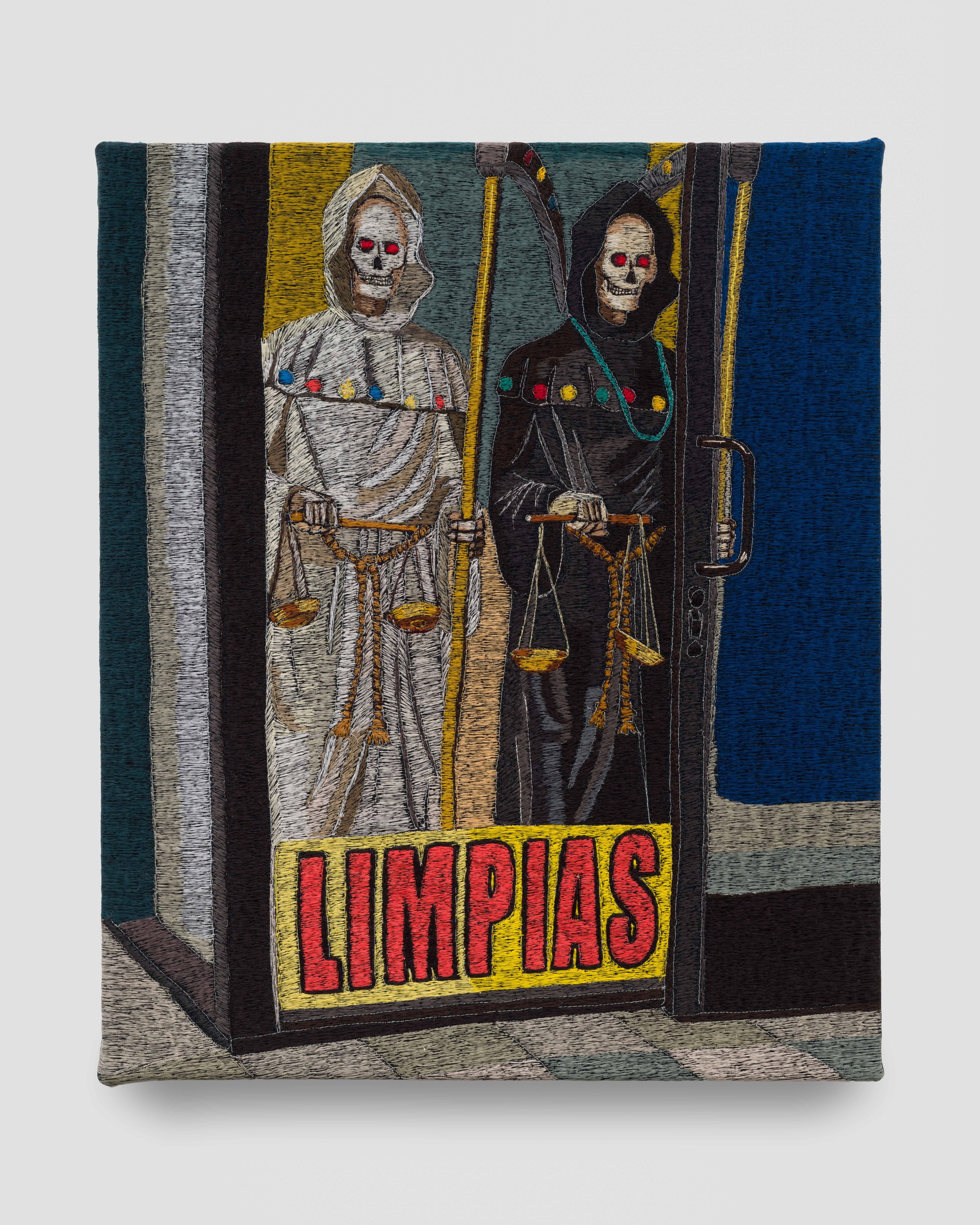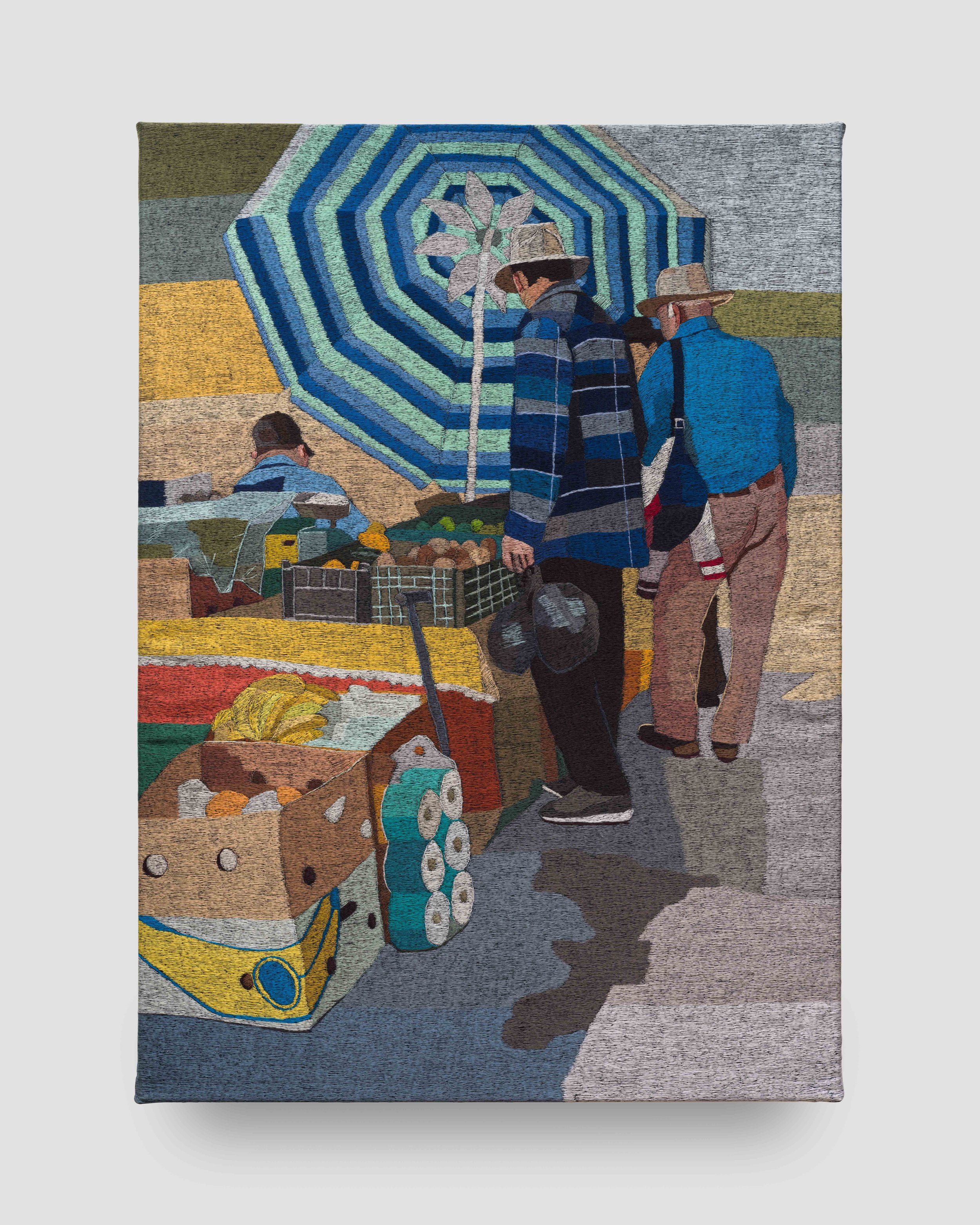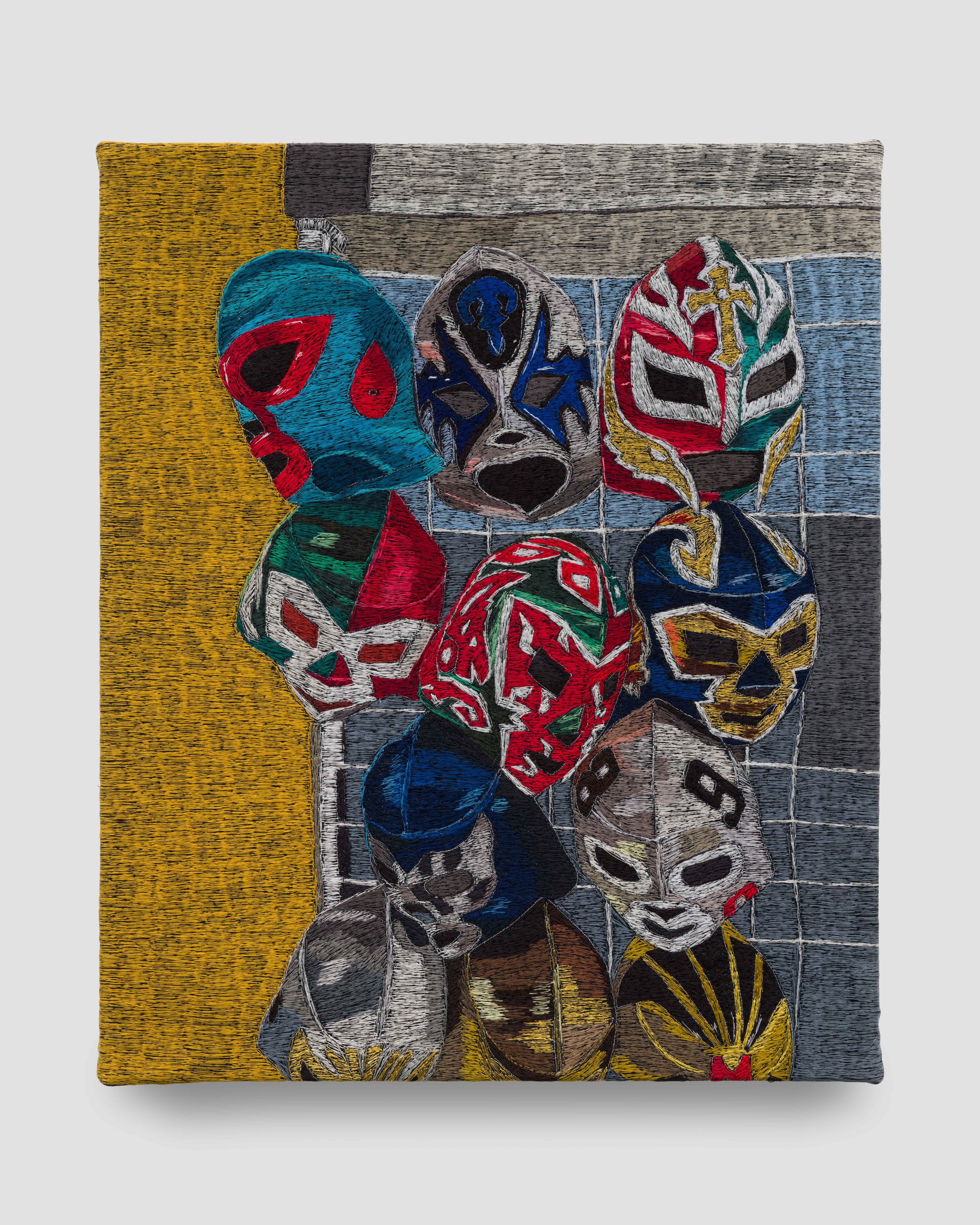 Los Angeles-based artist Erick Medel (b. 1992, Puebla, Mexico) creates intimate portraits of immigrant life using a sewing machine and thread much like one would use a paintbrush and oils.  Medel began working with textiles while completing his MFA at the Rhode Island School of Design. Medel moved to the United States from Mexico as a teenager, and he positions his work in the context of the wider history of immigrant labor. Medel’s work has been shown internationally and domestically in locations such as Plan X Gallery, Milan; de boer, Antwerp; Omni Gallery, London; Martha’s Contemporary, Austin; F2T Gallery, Milan; and Charlie James Gallery, Los Angeles. His work is in the collection of the Crocker Art Museum, Sacramento. Medel lives and works in Los Angeles, CA and is represented by Charlie James Gallery.